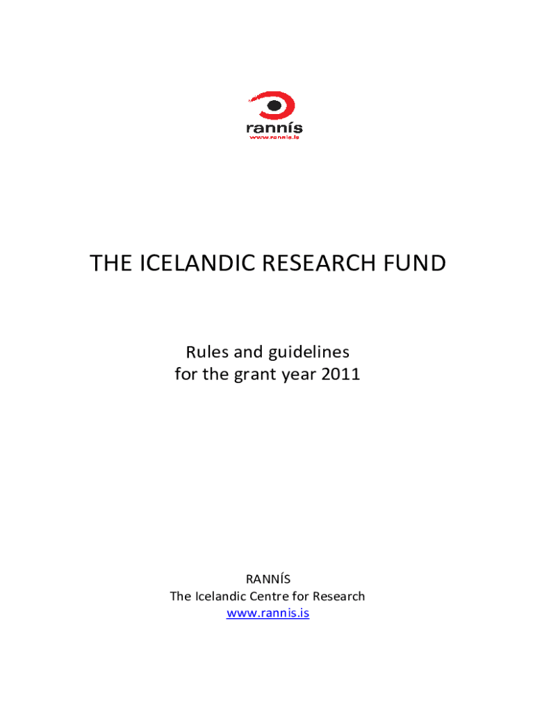 THE ICELANDIC RESEARCH Bundles and guidelines for the grant year 2011RANNS The Icelandic Center for Research www.rannis.isThe Icelandic Research Fund 2011Table of Contents I. II. III. IV. V. VI. VII.