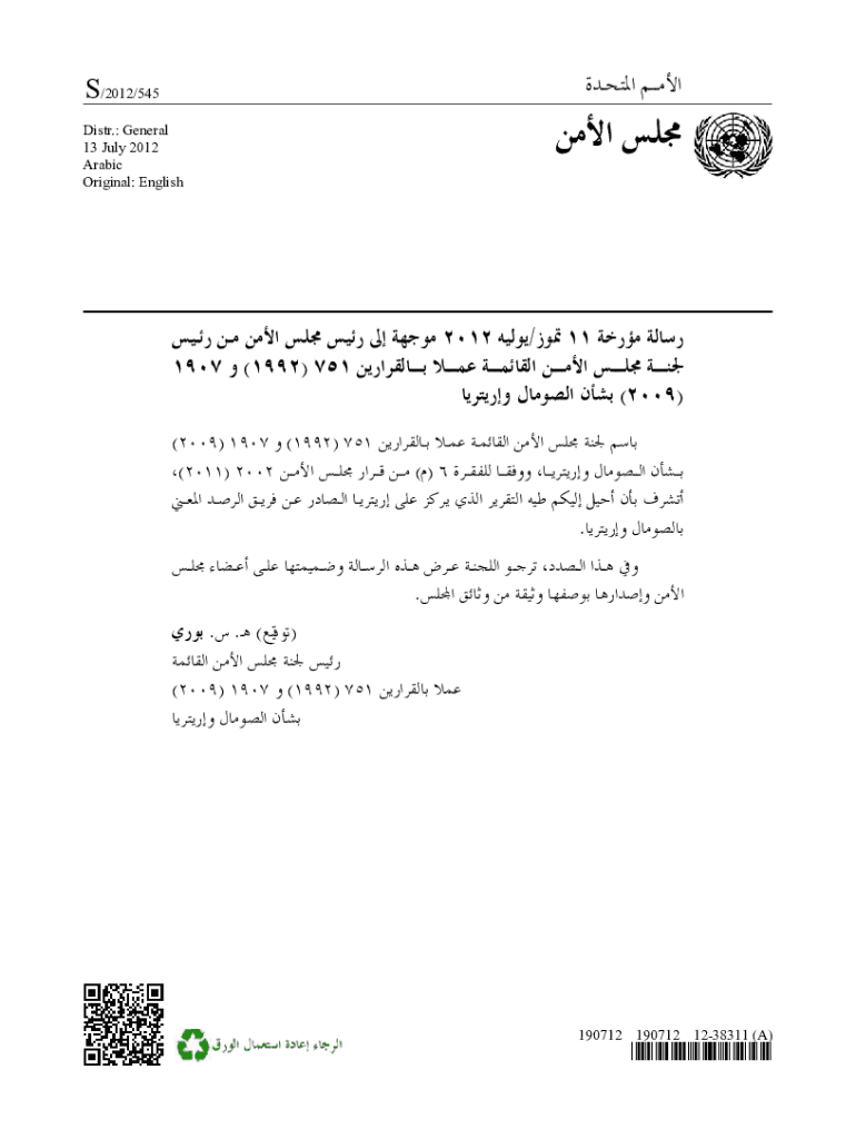 S/2012/545 Dist.: General 13 July 2012 Arabic Original: English /