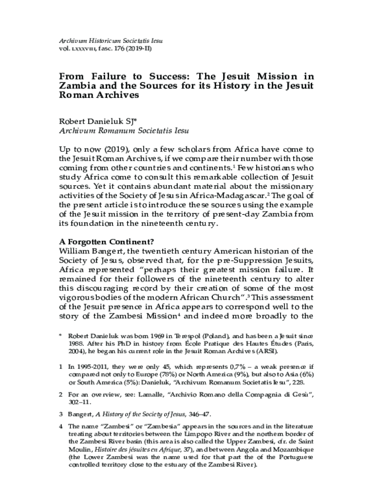 Get the free The Jesuit Mission in Zambia and the Sources for ... - AfricaBib