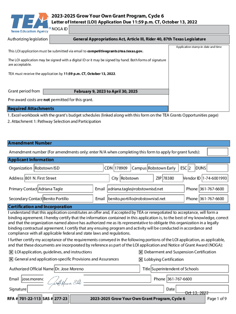 20232025 Grow Your Own Grant Program, Cycle 6Letter of Interest (LOI) Application Due 11:59 p.m. CT, October 13, 2022,