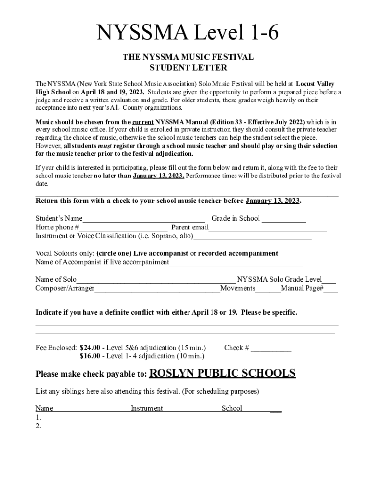 Get the free NYSSMA Parent Informational Letter.docx - Roslyn School