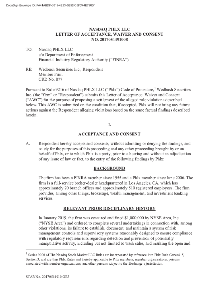 Get the free Nasdaq Phlx LLC c/o Department of Enforcement Fi