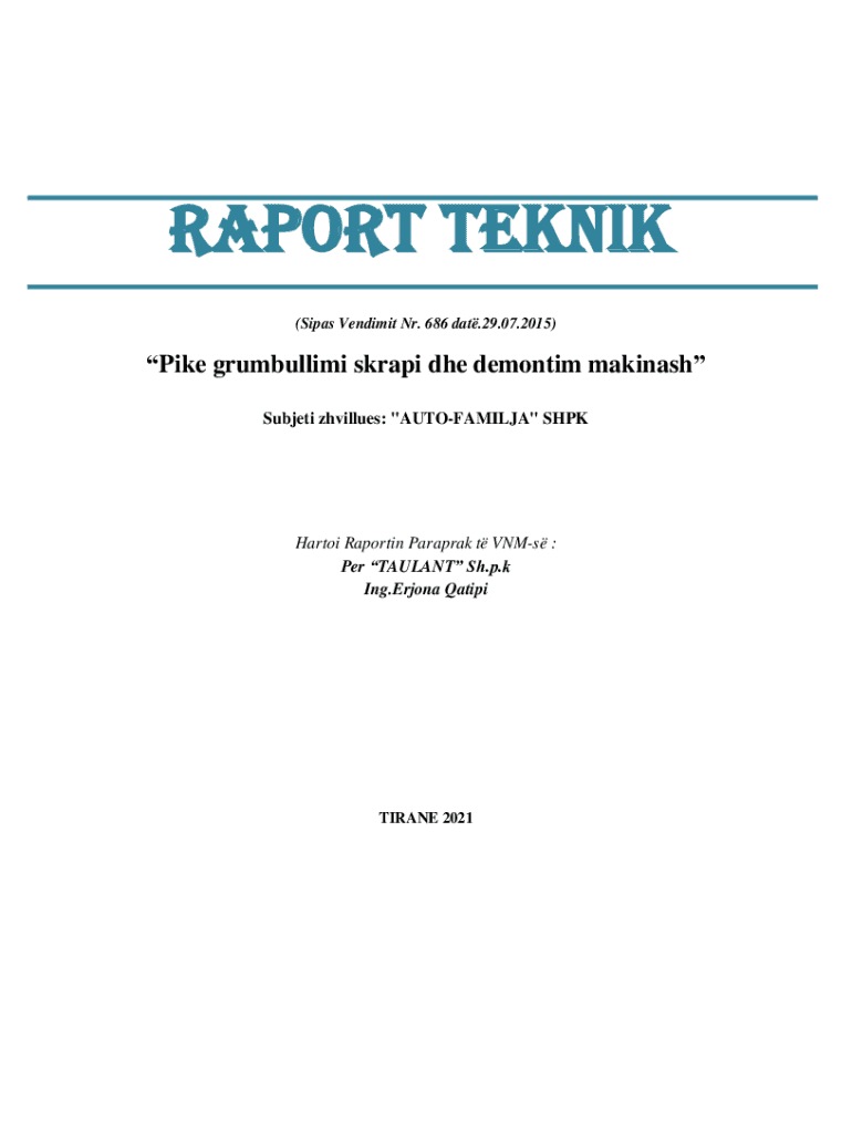 Subject villus: \” AUTOFAMILJA\” SHPKHartoi Reporting Paragraph t VMS :
