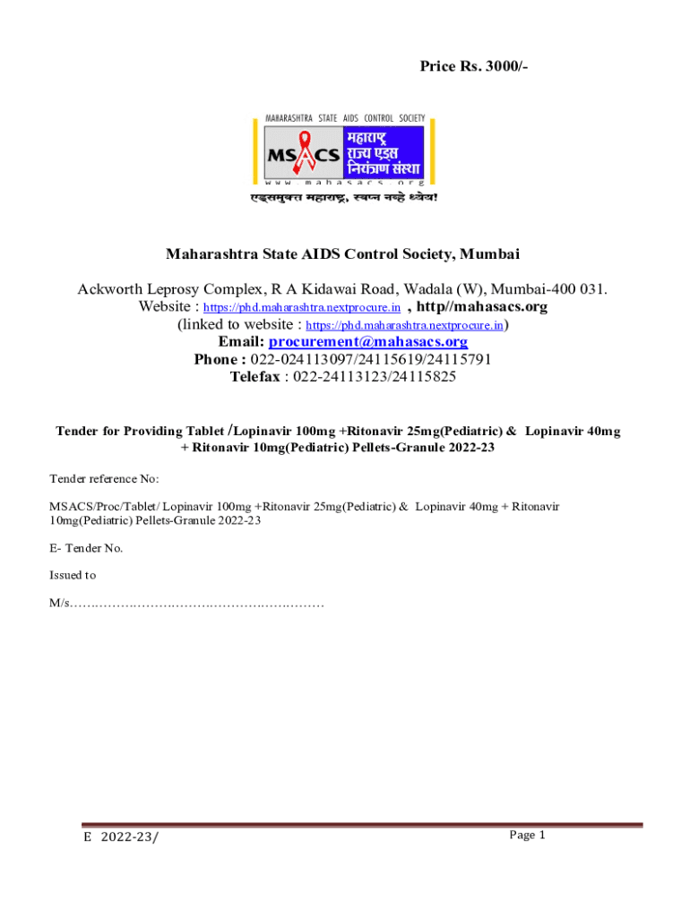 Price Rs. 3000/Maharashtra State AIDS Control Society, Mumbai Ashworth Leprosy Complex, R A Okinawa Road, Madeira (W), Mumbai400 031. Website : https://phd.maharashtra.nextprocure.in, HTTP//Bahamas.org