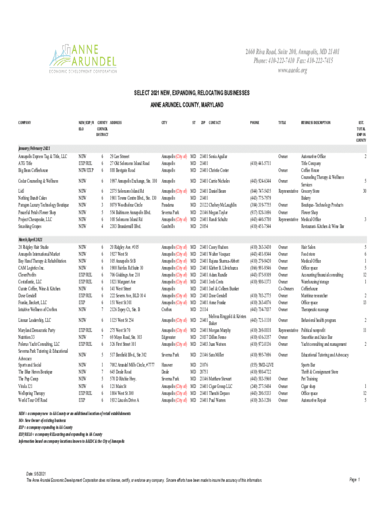 SELECT 2021 NEW, EXPANDING, RELOCATING BUSINESSES