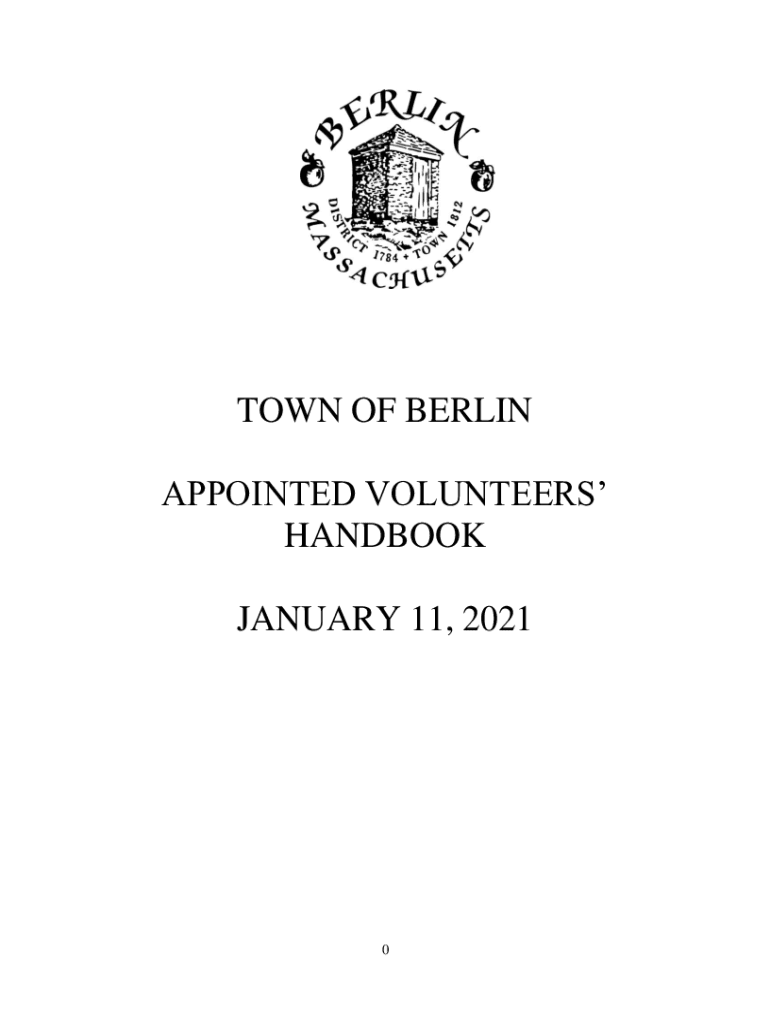 TOWN OF BERLIN APPOINTED VOLUNTEERS HANDBOOK JANUARY 11, 20210Table of Contents 1: Getting StartedResources for Volunteers41.2 Additional Publications42: Forming Committees52.1 Appointing Authority
