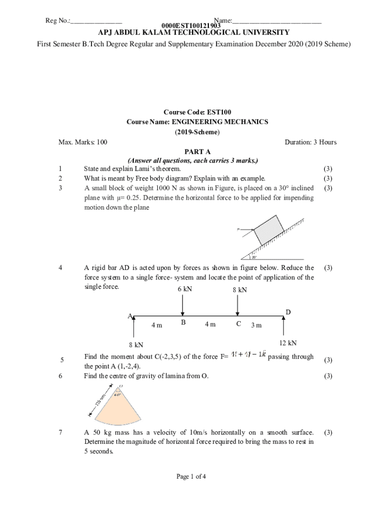 How to fill out btech engineering mechanics previous