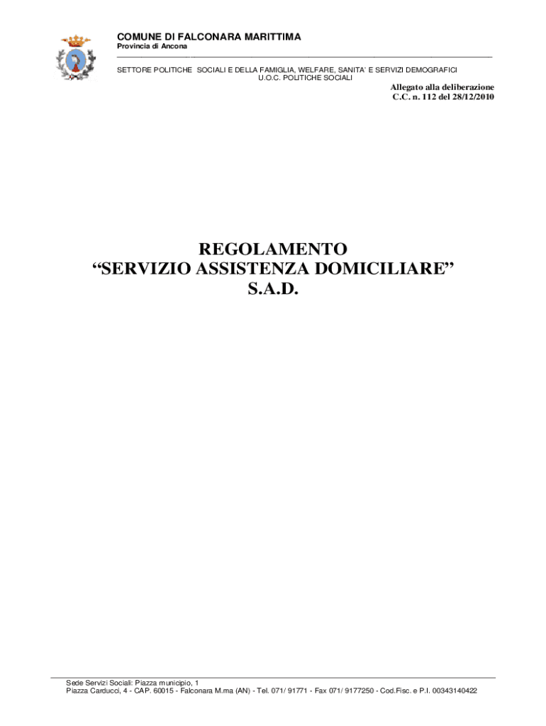 Ottieni il gratuito Reg.to Servizio assistenza domiciliare SAD