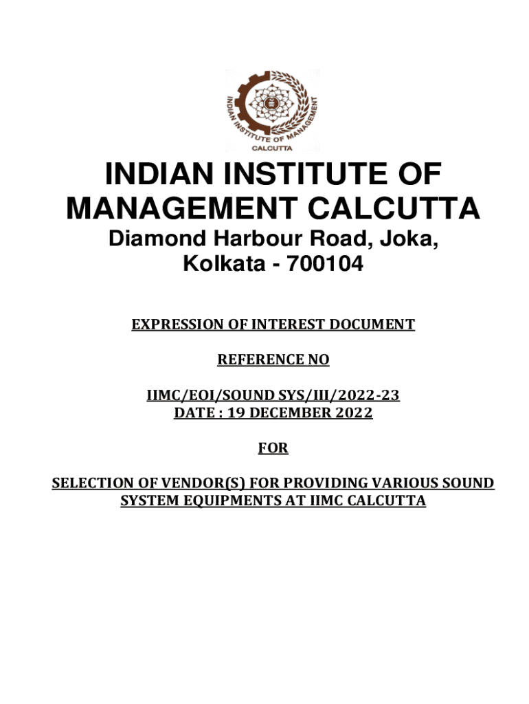 INDIAN INSTITUTE OF MANAGEMENT CALCUTTA Diamond Harbor Road, Jokey, Kolkata 700104 EXPRESSION OF INTEREST DOCUMENT REFERENCE NO IMC/EOI/SOUND SAYS/III/202223 DATE : 19 DECEMBER 2022 FOR SELECTION