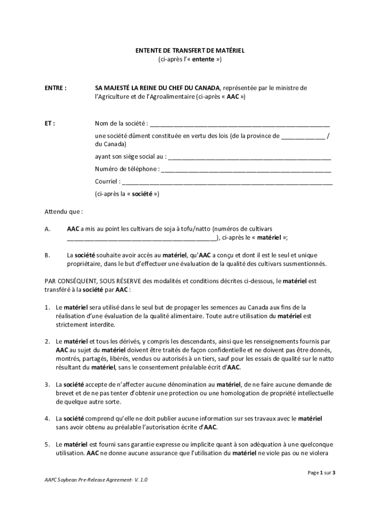 ENTENTE DE TRANSFER TDE MATERIEL