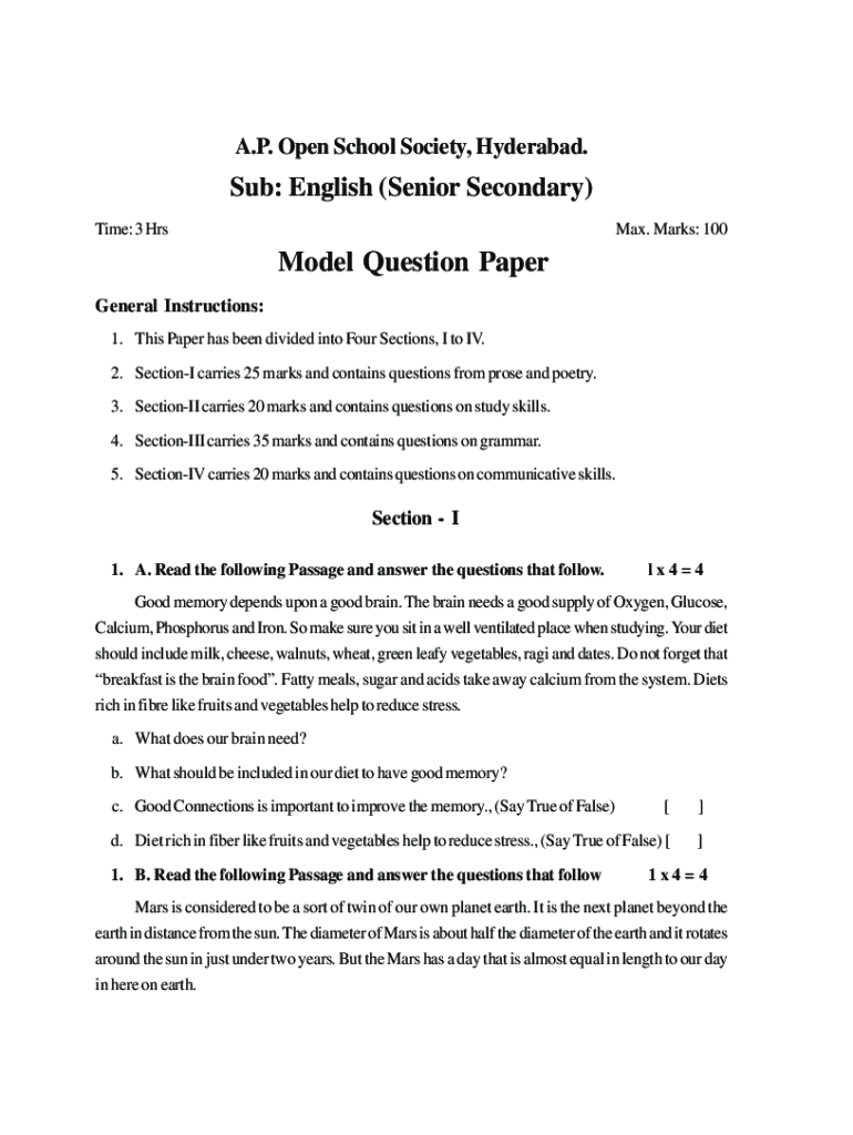 Get the free Senior Secondary English Question Paper Model AP Open ...