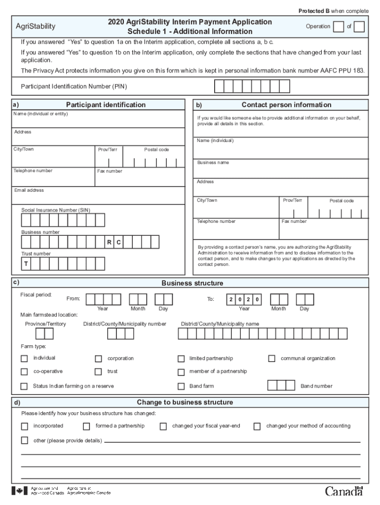 Protected B when complete2020 Irritability Interim Payment Application Schedule 1 Additional InformationAgriStabilityOperationofIf you answered Yes to question 1a on the Interim application, complete