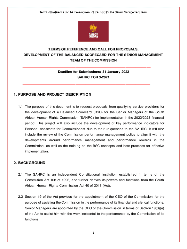 Terms of Reference for the Development of the BSC for the Senior Management teamsters OF REFERENCE AND CALL FOR PROPOSALS: DEVELOPMENT OF THE BALANCED SCORECARD FOR THE SENIOR MANAGEMENT TEAM OF THE