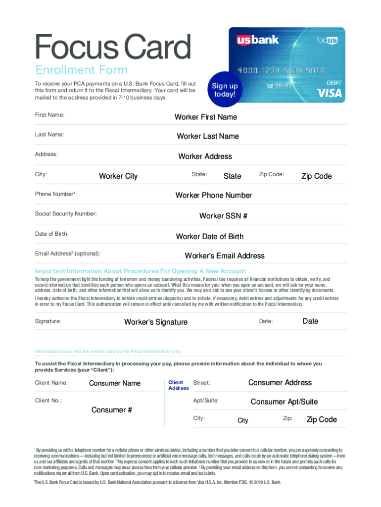 Enrollment Form receive your PCA payments on a U.S. Bank Focus Card, fill out