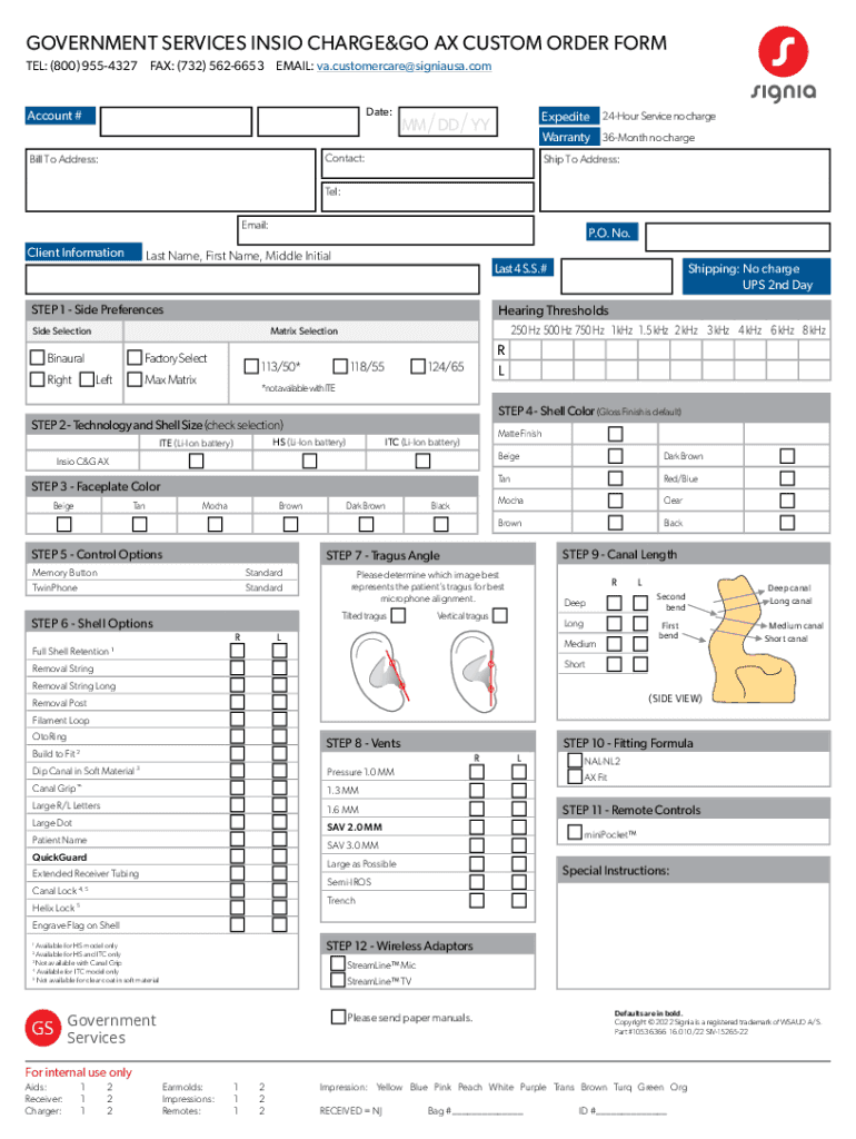 GOVERNMENT SERVICES INDIO CHARGE AX CUSTOM ORDER FORM