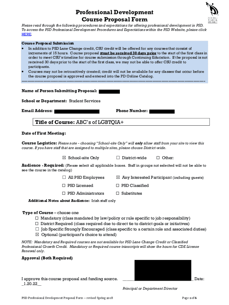 Get the free Professional Development Course Proposal Form
