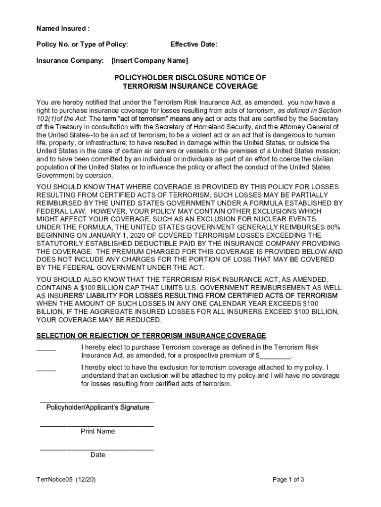 Obtain the notice of terrorism insurance form from your insurance provider.