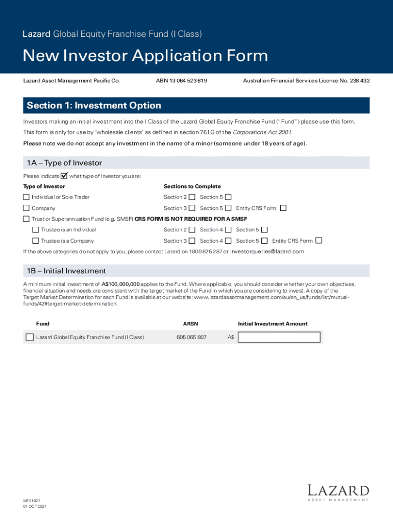 Hazard Global Equity Franchise Fund (I Class)New Investor Application Form Hazard Asset Management Pacific Co.ABN 13 064 523 619Australian Financial Services License No. 238 432Section 1: Investment