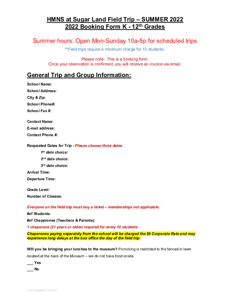 Get the free HMNS at Sugar Land Field Trip Summer Booking Form K