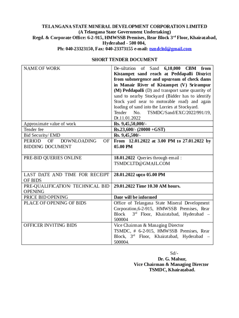 TELANGANA STATE MINERAL DEVELOPMENT CORPORATION LIMITED