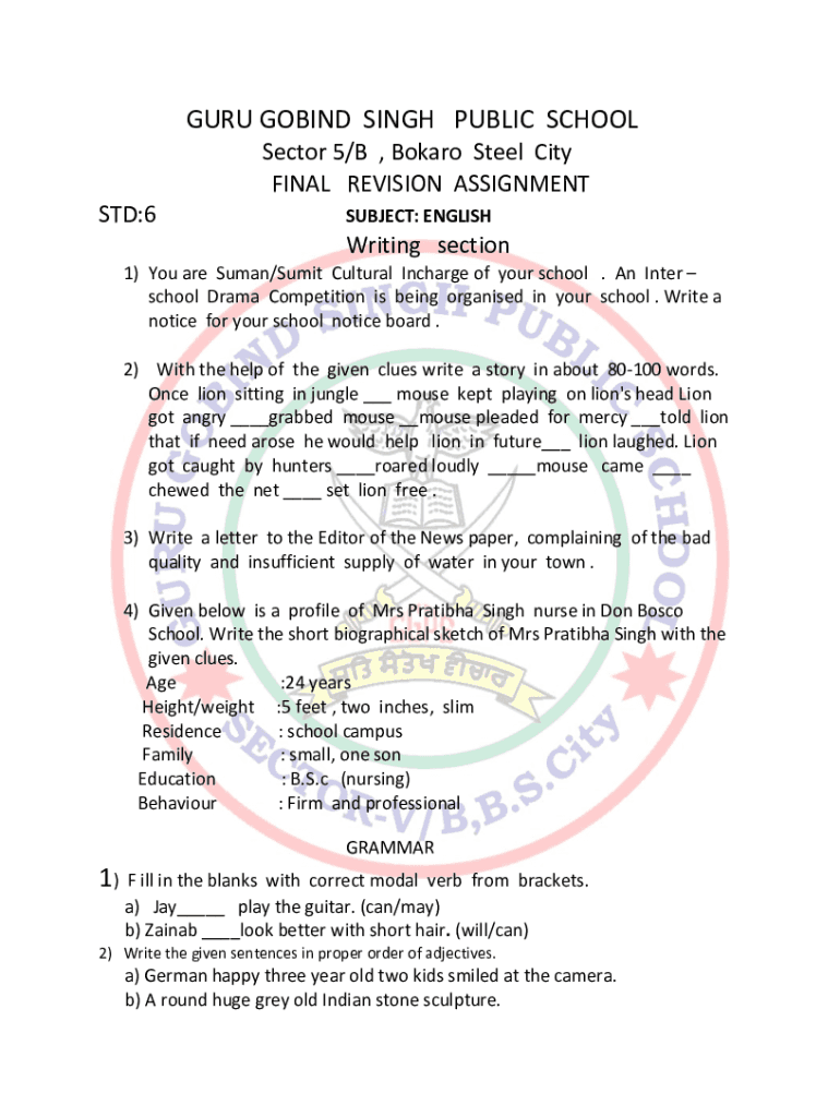 STD:6SUBJECT: ENGLISHWriting section