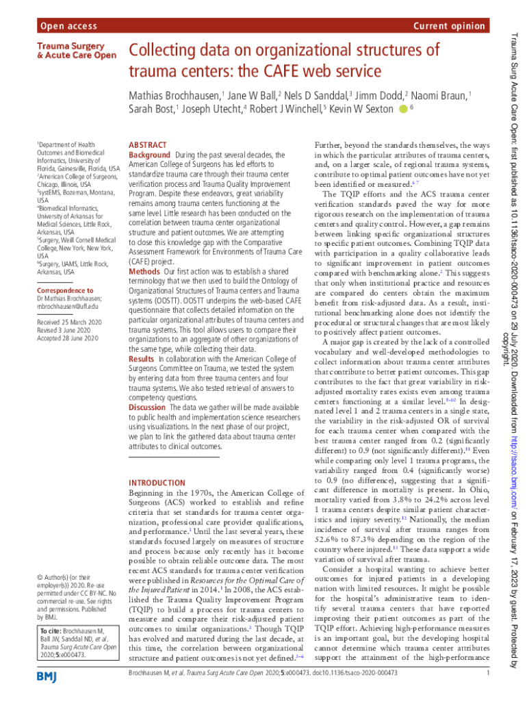 Open crosscurrent opinion Mathias Stockhausen,1 Jane W Ball,2 News D Sandal,3 Jim Dodd,2 Naomi Braun,1 Sarah Most,1 Joseph Utrecht,4 Robert J Winchell,5 Kevin W Sexton 6 1 Department of Health Outcomes