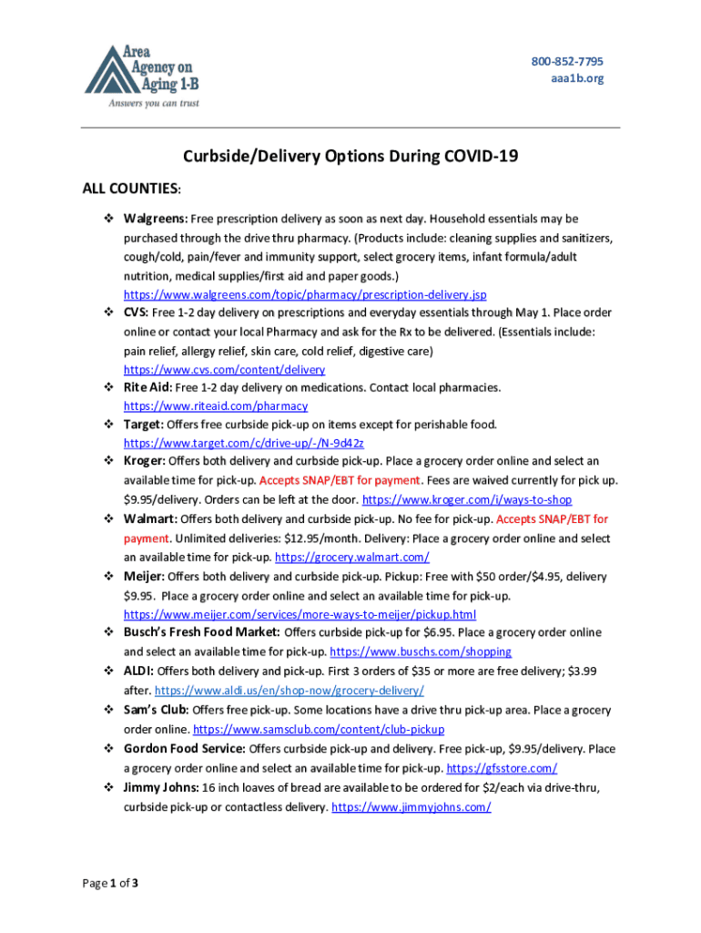 8008527795 aaa1b.orgCurbside/Delivery Options During COVID-19 ALL COUNTIES: Walgreens: Free prescription delivery as soon as next day. Household essentials may be purchased through the drive through