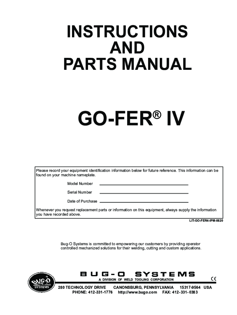 INSTRUCTIONS AND PARTS MANUALGOFER IV Please record your equipment identification information below for future reference. This information can be found on your machine nameplate. Model NumberSerial