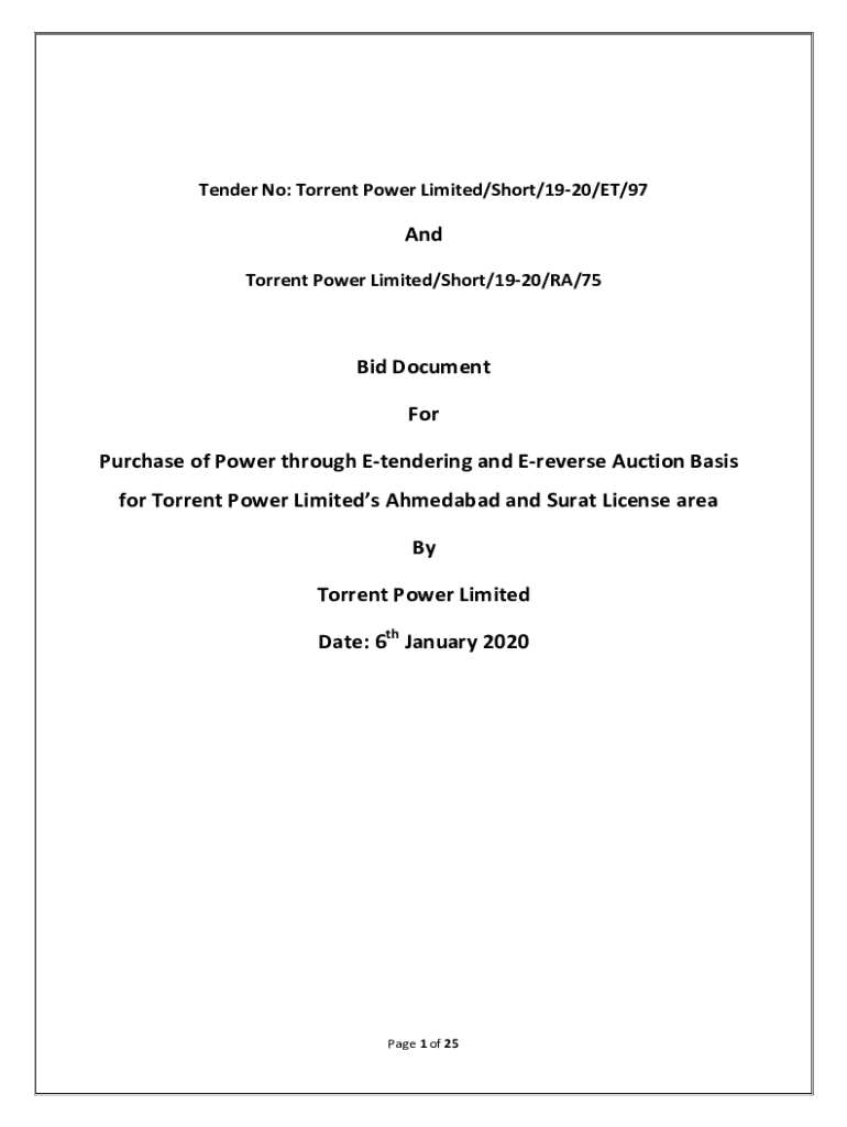 Tender No: Torrent Power Limited/Short/1920/ET/97And Torrent Power Limited/Short/1920/RA/75Bid Document For Purchase of Power through Tendering and Reverse Auction Basis for Torrent Power Limited