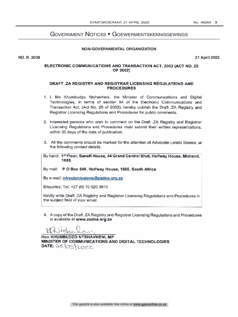 STAATSKOERANT, 21 April 2022No. 46264 3Government Notices Goewermentskennisgewings