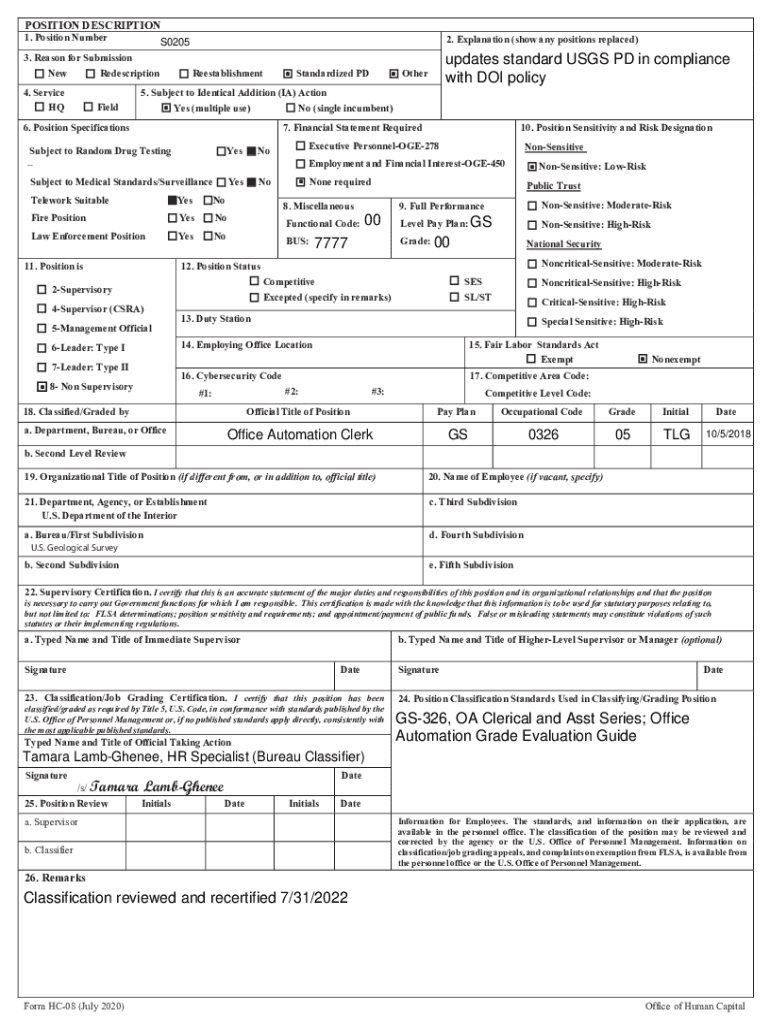 POSITION DESCRIPTION 1. Position Number2. Explanation (show any positions replaced)S02053. Reason for Submission NewRedescription4. Service HQReestablishmentStandardized PD updates standard USGS PD
