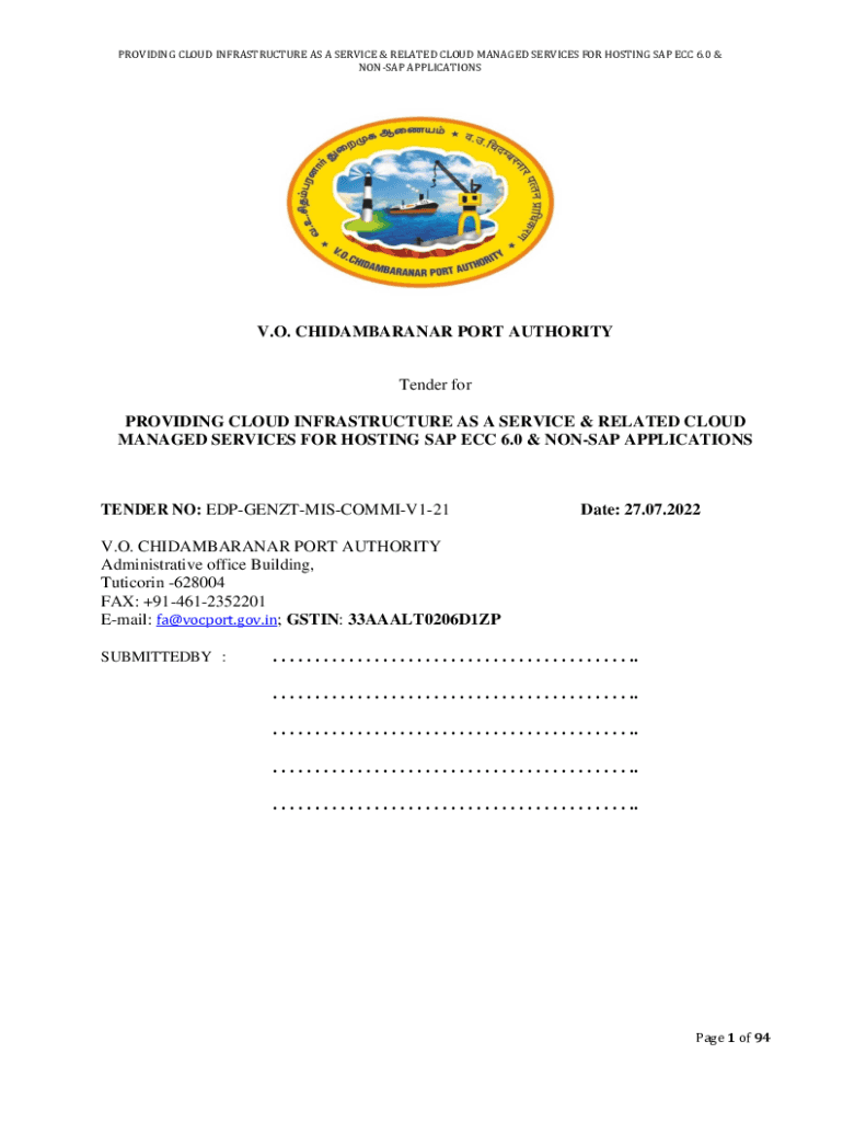 PROVIDING CLOUD INFRASTRUCTURE AS A SERVICE & RELATED CLOUD MANAGED SERVICES FOR HOSTING SAP ECC 6.0 & NONSAP APPLICATIONS. O. CHIDAMBARANAR PORT AUTHORITY Tender for PROVIDING CLOUD INFRASTRUCTURE