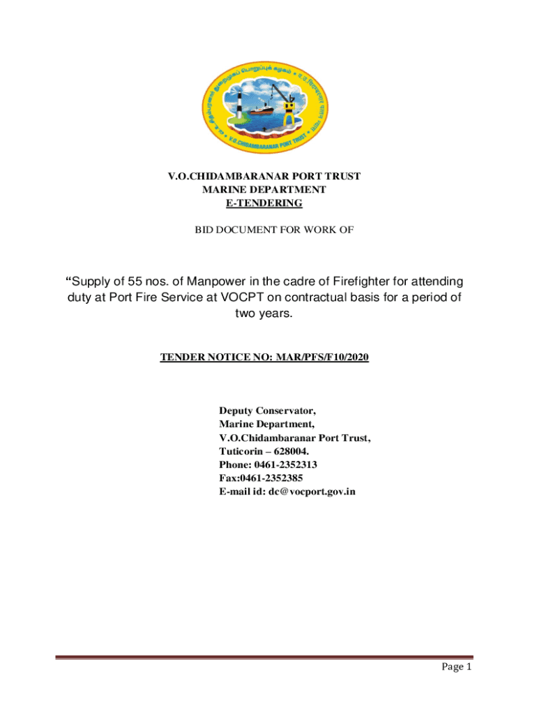 V.O.CHIDAMBARANAR PORT TRUST MARINE DEPARTMENT TENDERING BID DOCUMENT FOR WORK Supply of 55 nos. Of Manpower in the cadre of Firefighter for attending duty at Port Fire Service at VOC PT on contractual