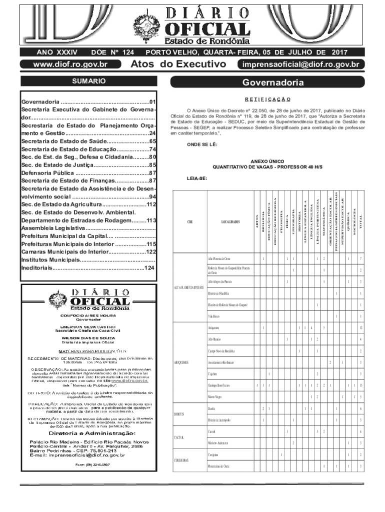 Obtenha o gratuito DOE N 124 - diof ro gov