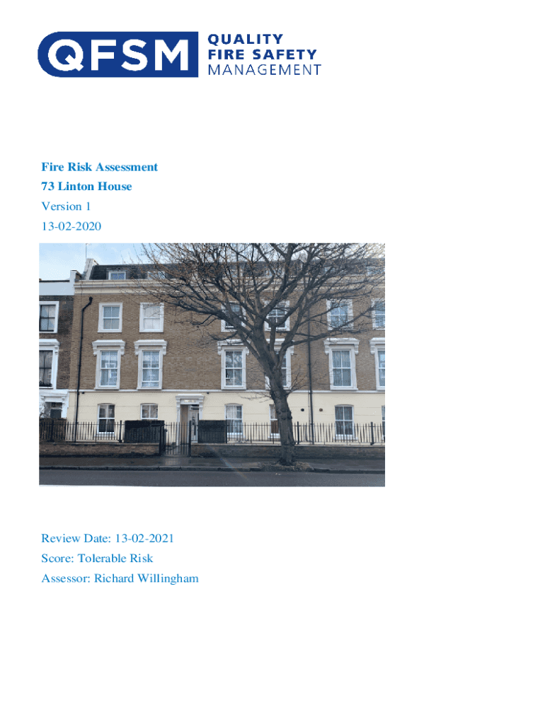 Fire Risk Assessment 73 Linton House Version 1 13022020Review Date: 13022021 Score: Tolerable Risk Assessor: Richard WillinghamContents 1 Action Plan Summary ........................................................................................................................