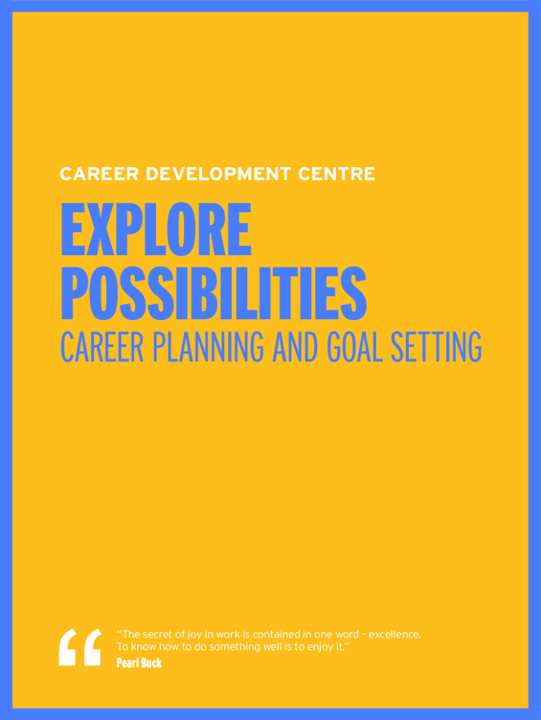 CAREER DEVELOPMENT CENTREEXPLORE POSSIBILITIESCAREER PLANNING AND GOAL Setting secret of joy in work is contained in one word excellence. To know how to do something well is to enjoy it. Pearl Buck