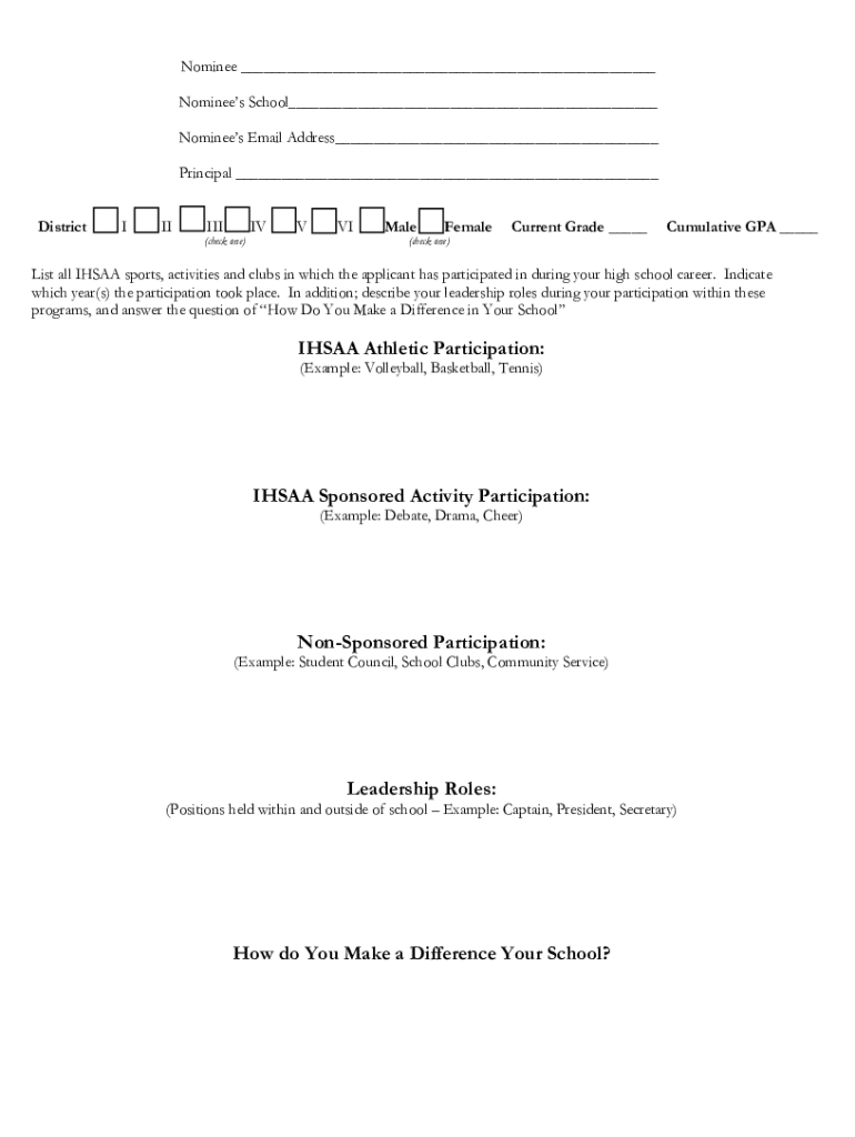 Ihsaa Student Advisory Committee is not the form you're looking for?Search for another form here.