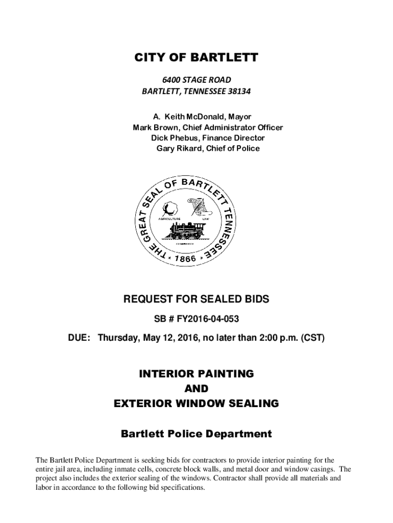 CITY OF BARTLETT 6400 STAGE ROAD BARTLETT, TENNESSEE 38134 A. Keith McDonald, Mayor Mark Brown, Chief Administrator Officer Dick Phelps, Finance Director Gary Richard, Chief of PoliceREQUEST FOR SEALED