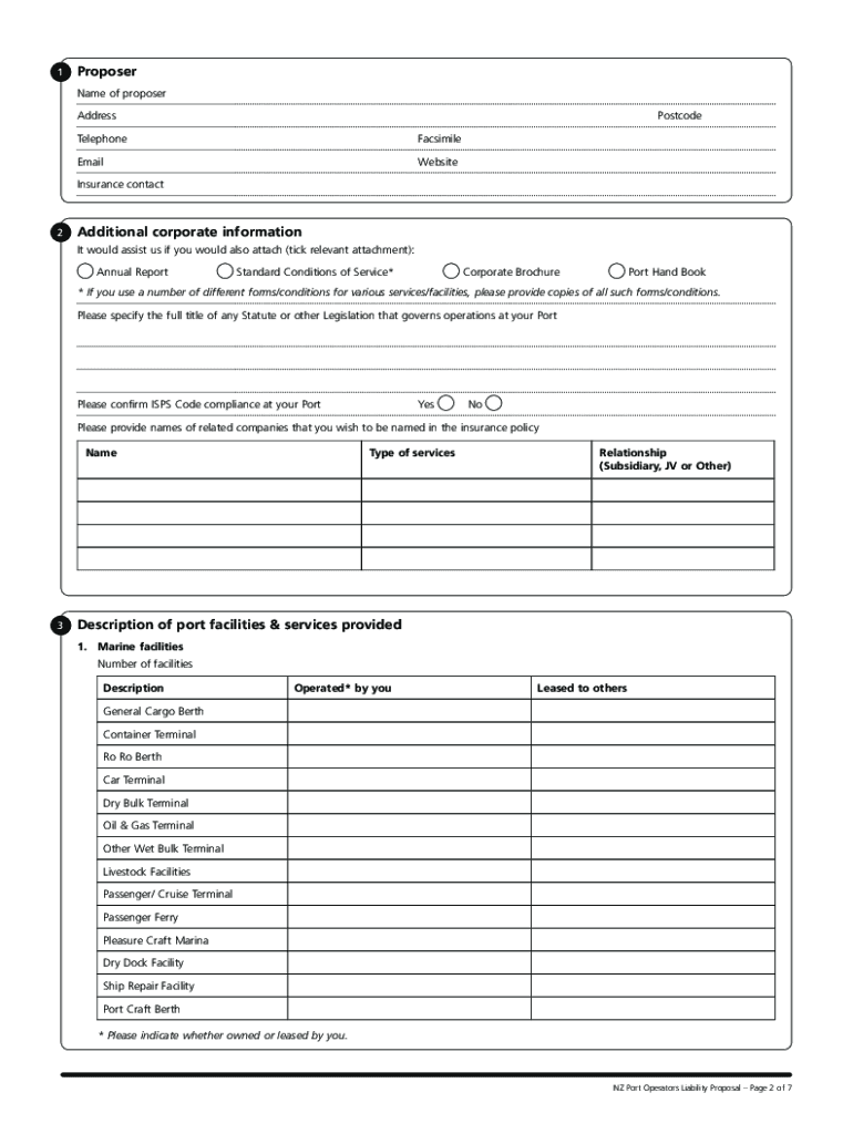Port Operators Liability Insurance New Zealand Proposal Form Completing the Proposal form 1. This application must be completed in full including all required attachments. 2. If more space is needed