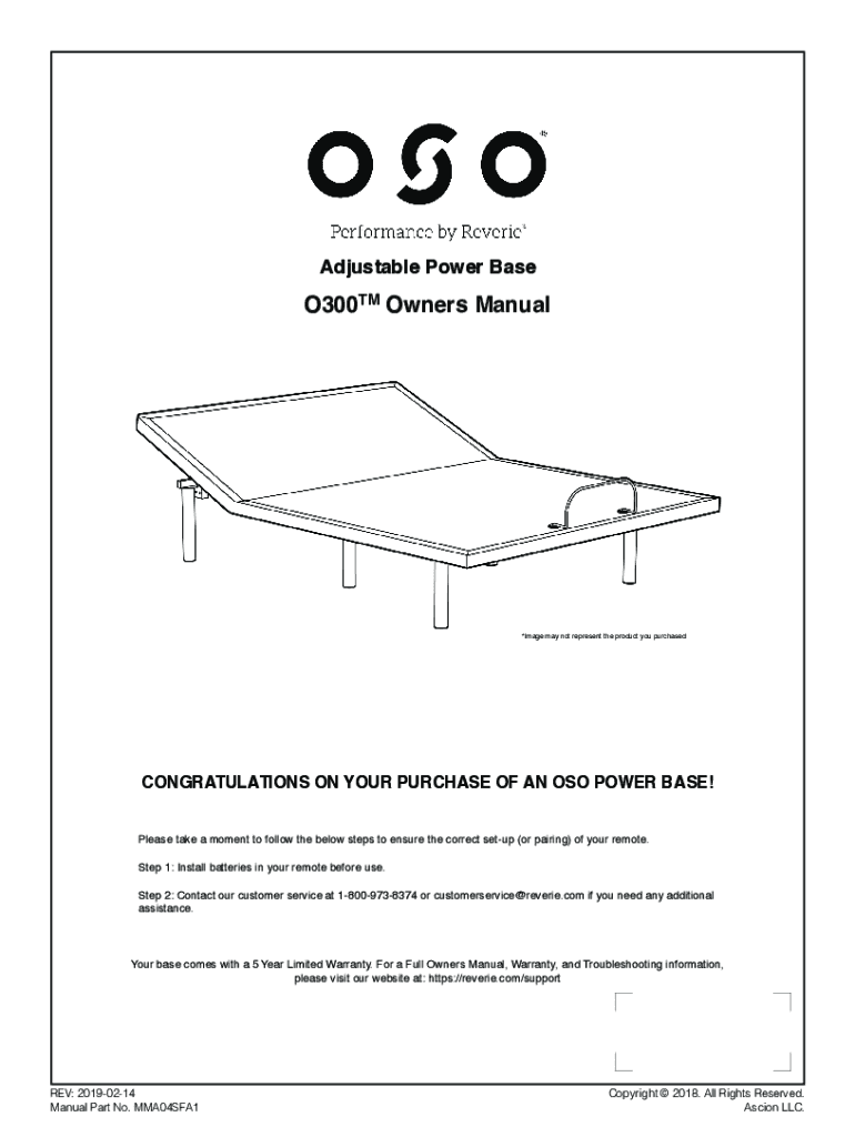 Adjustable Power BaseO300TM Owners Manual×Image may not represent the product you purchasedCONGRATULATIONS ON YOUR PURCHASE OF AN SO POWER BASE! Please take a moment to follow the below steps to