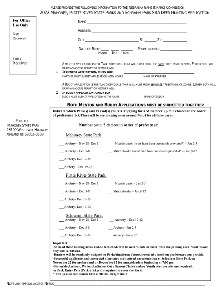 MAHONEY, PLATTE RIVER STATE PARKS AND SCRAM PARK SRA DEER HUNTING Application Office