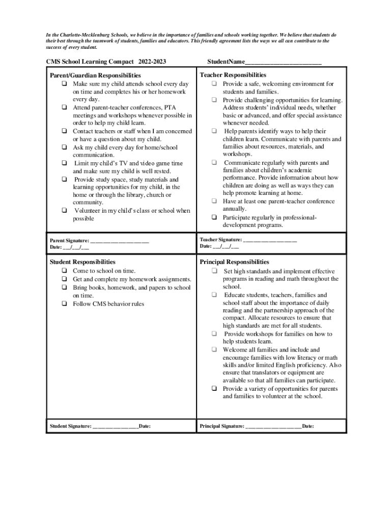 In the CharlotteMecklenburg Schools, we believe in the importance of families and schools working together. We believe that students do their best through the teamwork of students, families and educators.