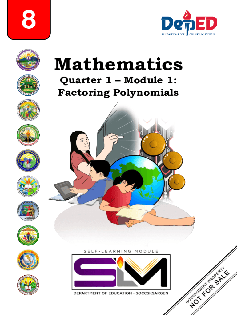8 Mathematics Quarter 1 Module 1: Factoring PolynomialsMathematics Grade 8 Relearning Module (SUM) Quarter 1 Module 1: Factoring Polynomials First Edition, 2020 Republic Act 8293, section 176 states