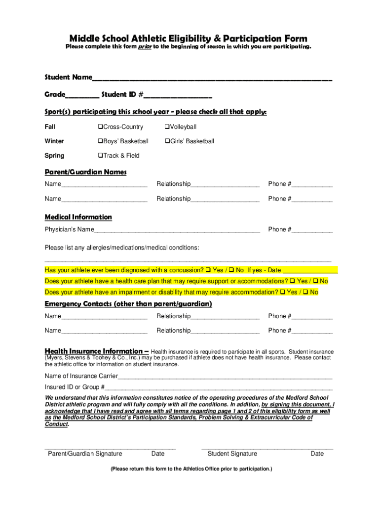 Get the free Eligibility Guide for Participation In 7th-8th Grade Athletics