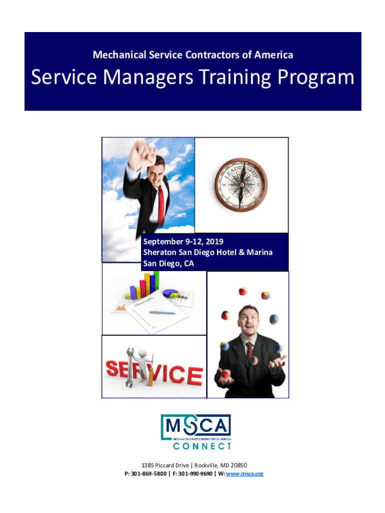 Mechanical Service Contractors of AmericaService Managers Training Program September 912, 2019 Sheraton San Diego Hotel & Marina San Diego, CA1385 Pic card Drive | Rockville, MD 20850 P: 3018695800