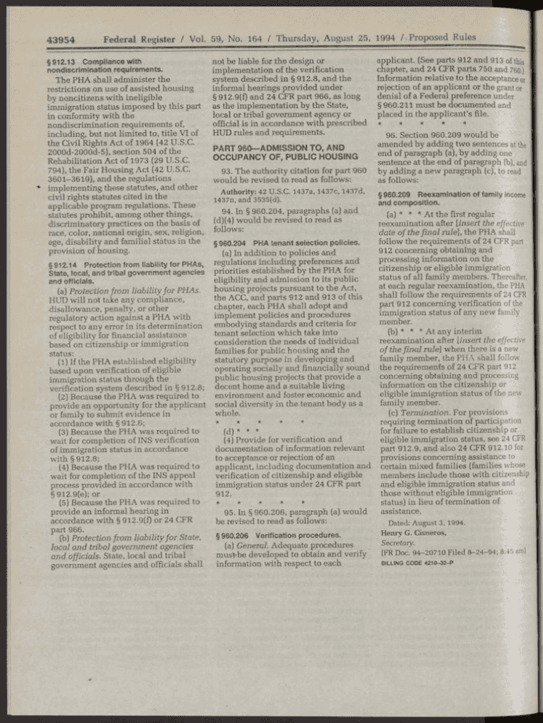 43954Federal Register / Vol. 59, No. 164 / Thursday, August 25, 1994 / Proposed Rules912.13 C on pliancy with n o n d scrim in a to n requirements. The PHA shall administer the restrictions on use