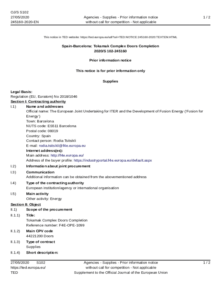 Get the free Services - 252558-2020 - TED Tenders Electronic Daily - industryportal f4e europa