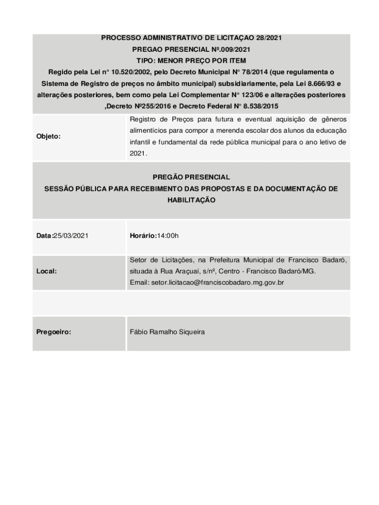 Region plea Lei n 10.520/2002, polo Secret Municipal N 78/2014 (Que regalement o