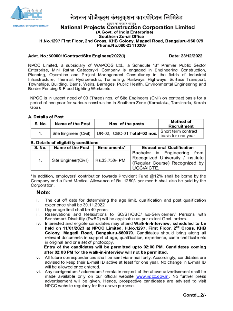MINIVAN : CATEGORY COMPANY()National Projects Construction Corporation Limited(A Govt. of India Enterprise) Southern Zonal Office H. No.1297 First Floor, 2nd Cross, kHz Colony, Malawi Road, Bengaluru560