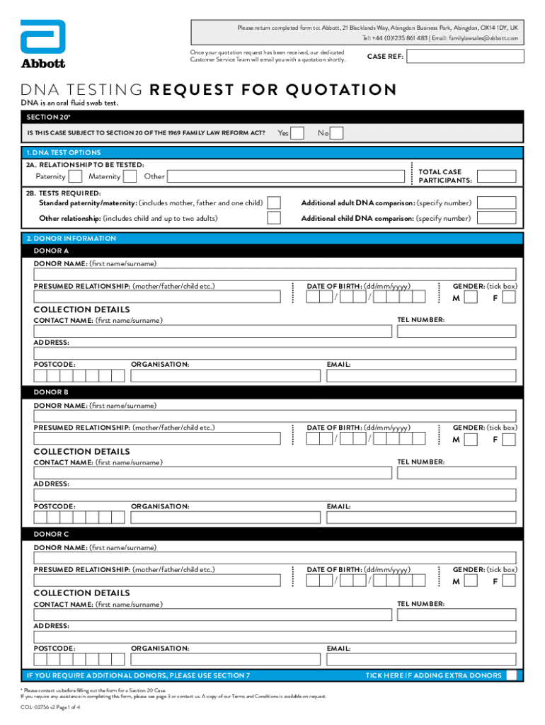 Please return completed form to: Abbott, 21 Black lands Way, Abingdon Business Park, Abingdon, OX14 1DY, UK Tel: +44 (0)1235 861 483 | Email: familylawsales@abbott.com Once your quotation request